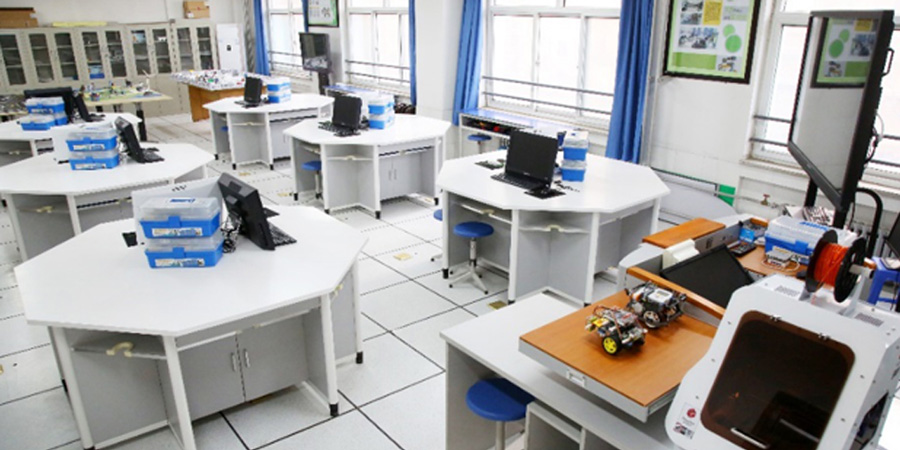 阿斑兔將機(jī)器人、創(chuàng)客、3D打印、航模等融為一體,研發(fā)、設(shè)計具有情景體驗(yàn)、創(chuàng)意生成、原型制作、展示交流等多功能為一體的機(jī)器人教育教學(xué)場所,即創(chuàng)新教育實(shí)驗(yàn)室,針對不同年齡段學(xué)生的特點(diǎn)、學(xué)校學(xué)情等,為其提供足夠的空間、設(shè)備和完善的課程體系。